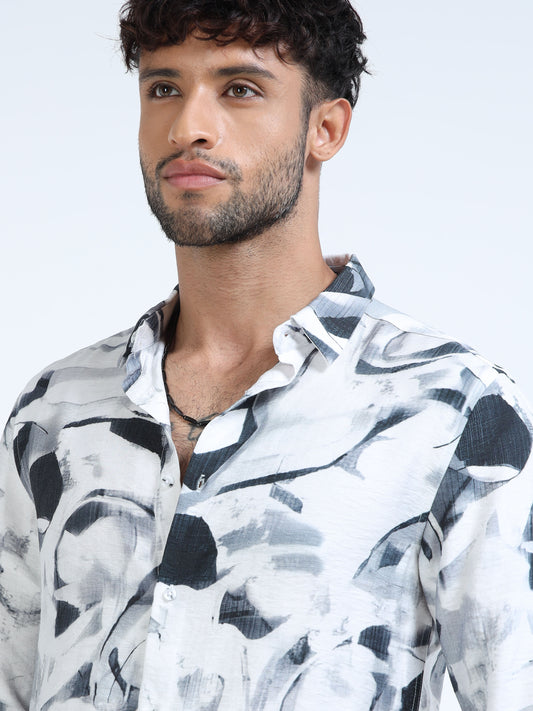 Elevate your everyday style with the White & Black Abstract Brushstroke Full Sleeve Shirt. Featuring...