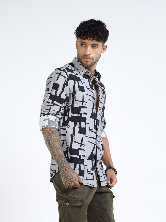 Step into bold urban style with the Grey & Black Geometric Brush Print Full Sleeve...