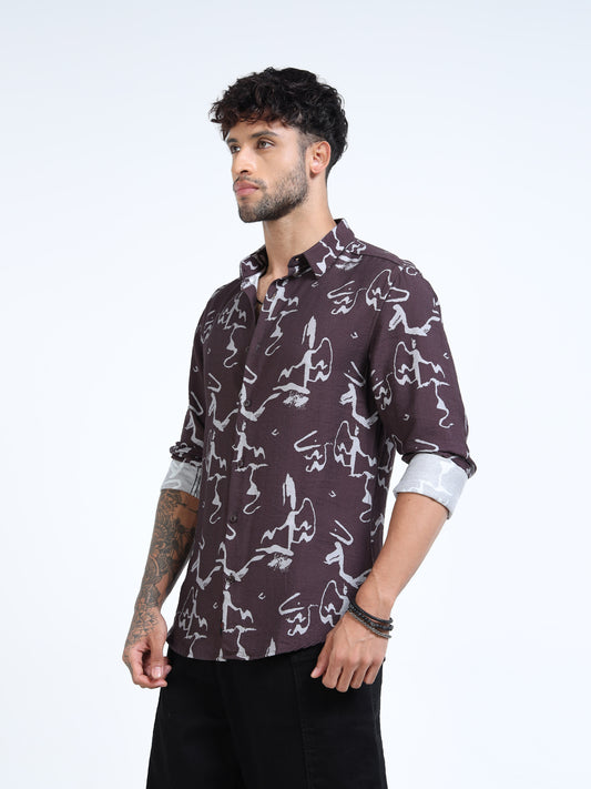 Unleash your creative edge with the Maroon & Grey Abstract Brush Print Full Sleeve Shirt...