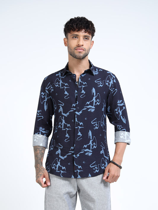 Elevate your everyday style with the Navy & Blue Abstract Brushstroke Full Sleeve Shirt. Featuring...