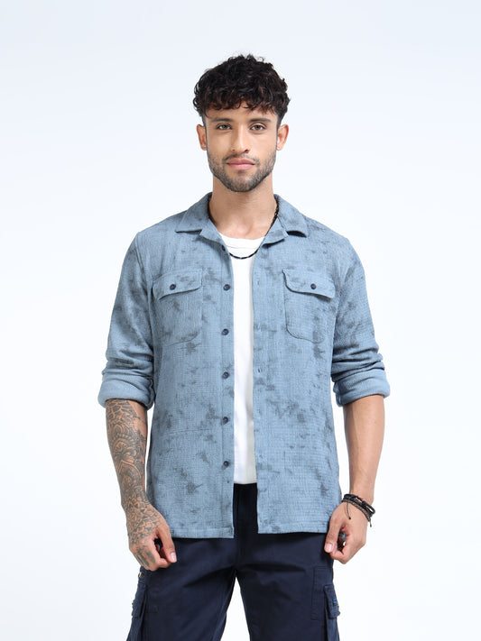 Infused with laid-back cool, the Dusty Blue Tie-Dye Print Textured Overshirt strikes the perfect balance...