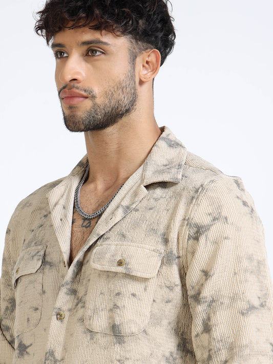A neutral yet standout layer, this Beige Tie-Dye Print Textured Overshirt brings earthy tones and...