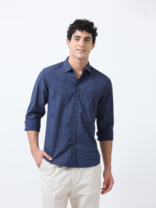 Blue Abstract Print Textured Shirt