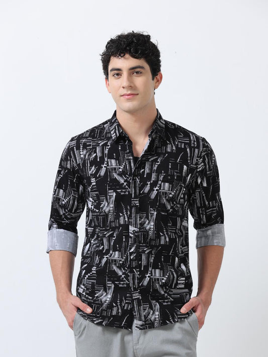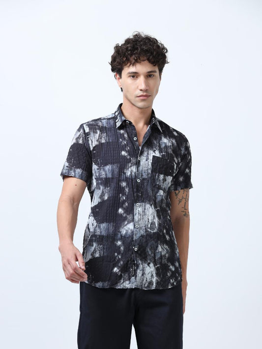 Black Abstract Print Textured Shirt