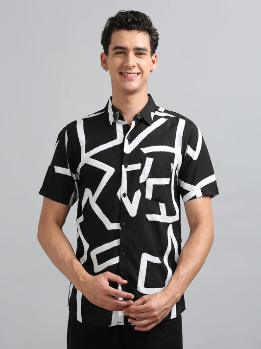 Black Geometric Print Shirt