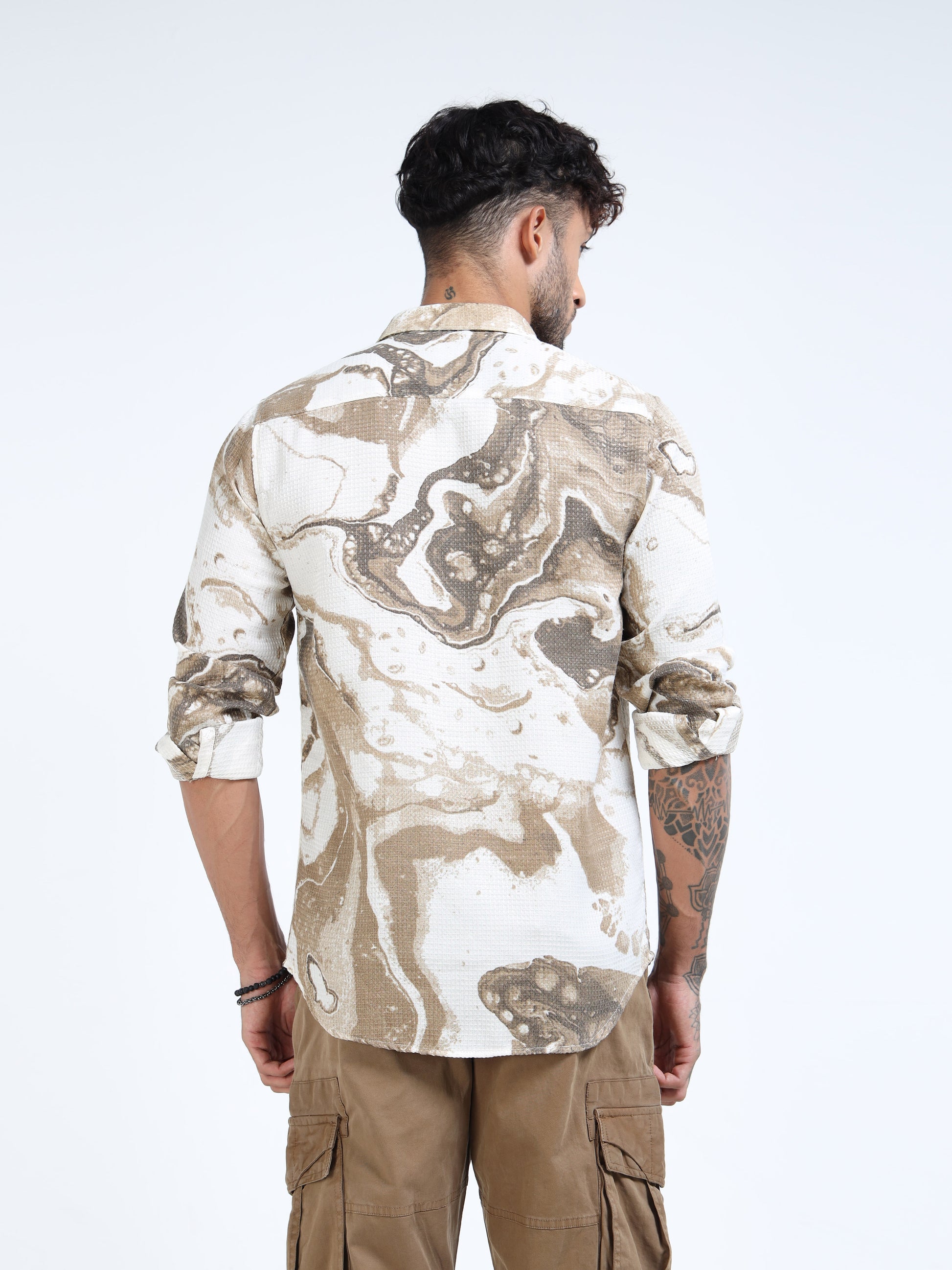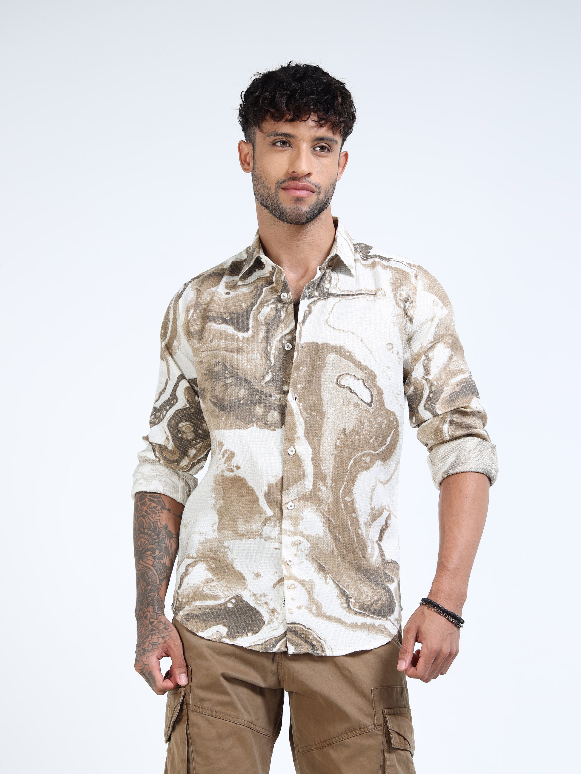 Elevate your casual wardrobe with the Beige & Brown Marble Swirl Long-Sleeve Casual Shirt. Featuring a striking marble-inspired swirl print in earthy beige and brown tones, this shirt delivers a bold yet sophisticated aesthetic with a relaxed edge. Designed with full sleeves, a classic collar and button-down front, it’s built to transition seamlessly from chilled day outings to stylish evening scenes.
