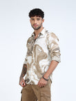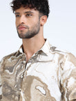 Beige & Brown Marble Swirl Long-Sleeve Casual Shirt