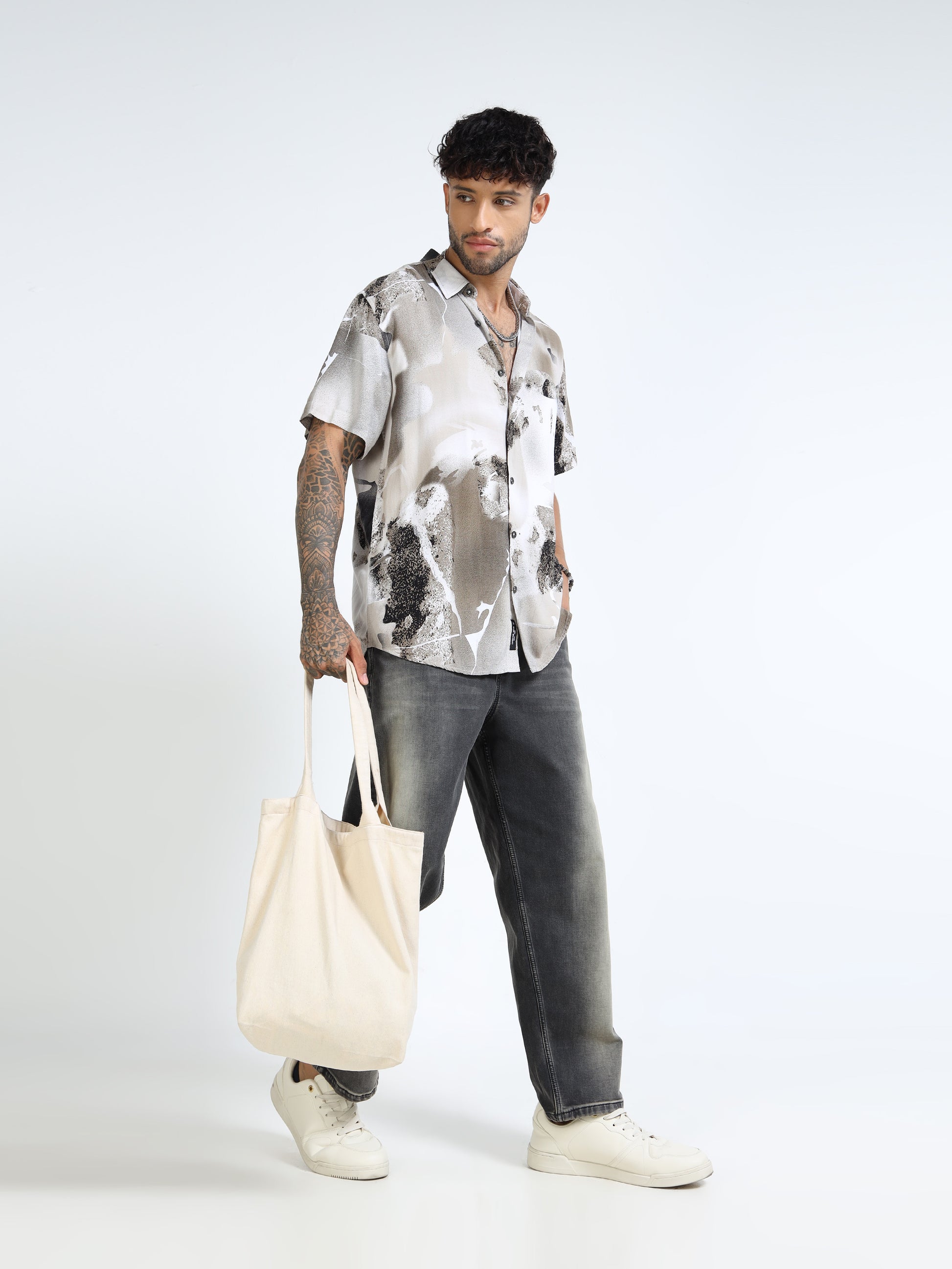 Whether you're heading out for a casual brunch, meeting friends in the evening or refreshing your everyday lineup, this shirt delivers standout style without trying too hard. The neutral base makes it easy to pair, while the abstract pattern adds a creative twist. Team it with washed denims for an easygoing look or style it with tailored trousers to elevate your smart-casual game.