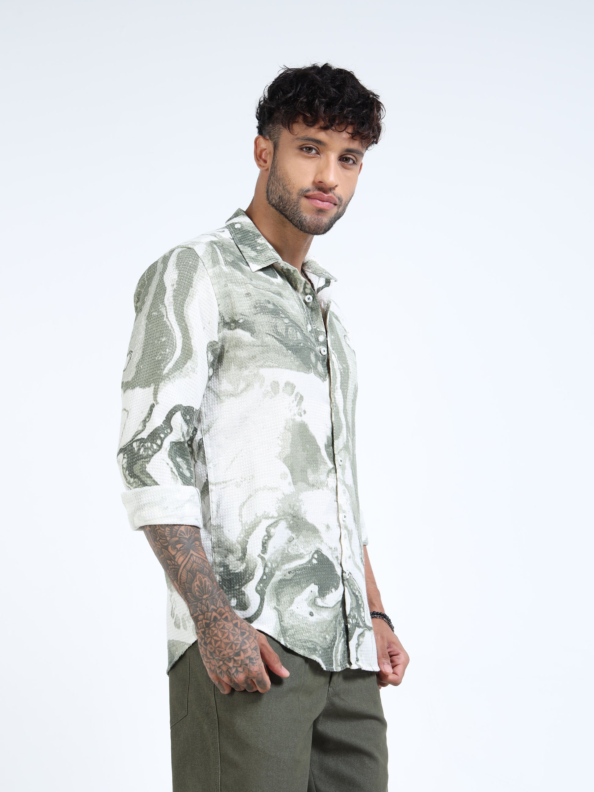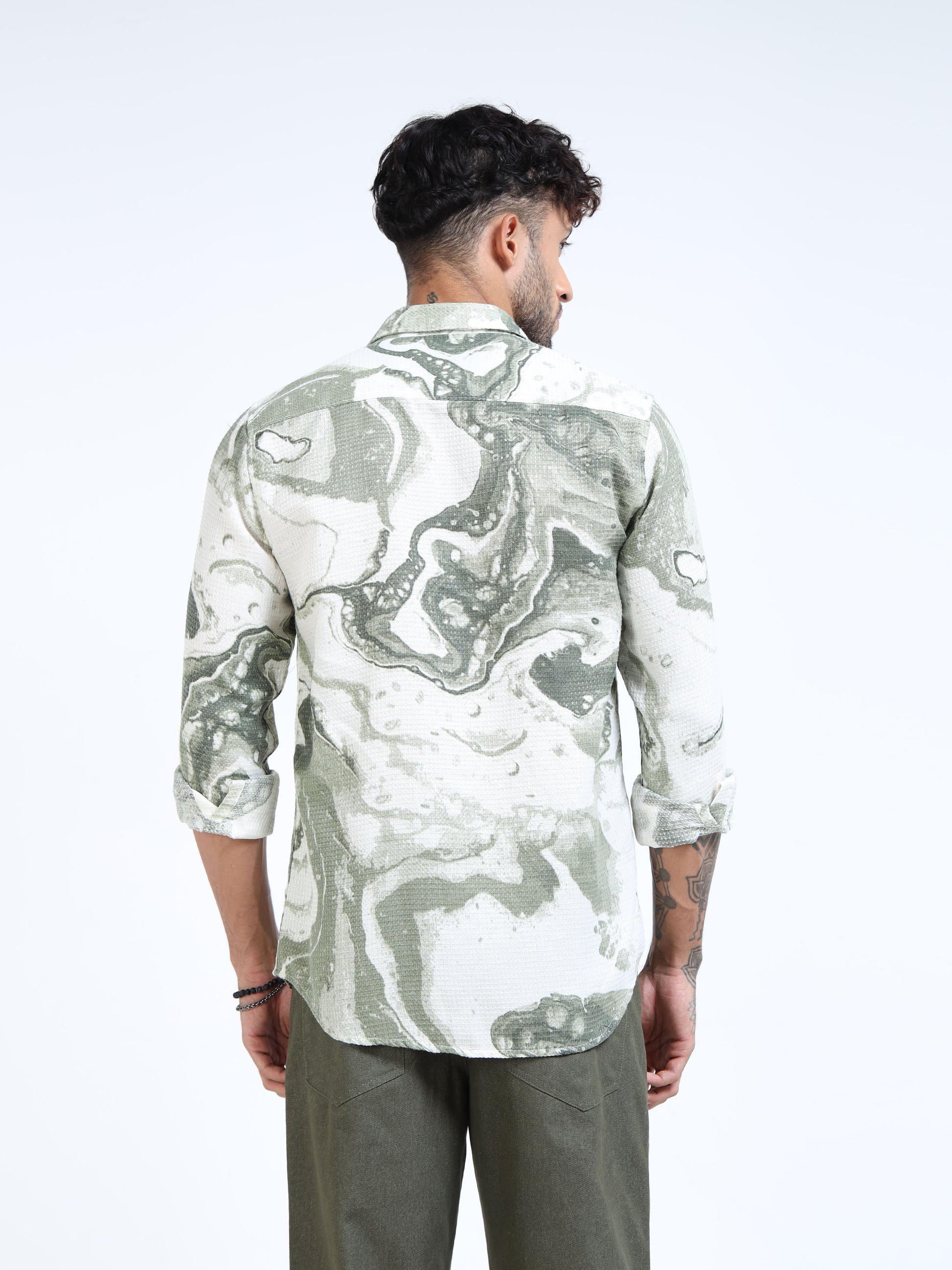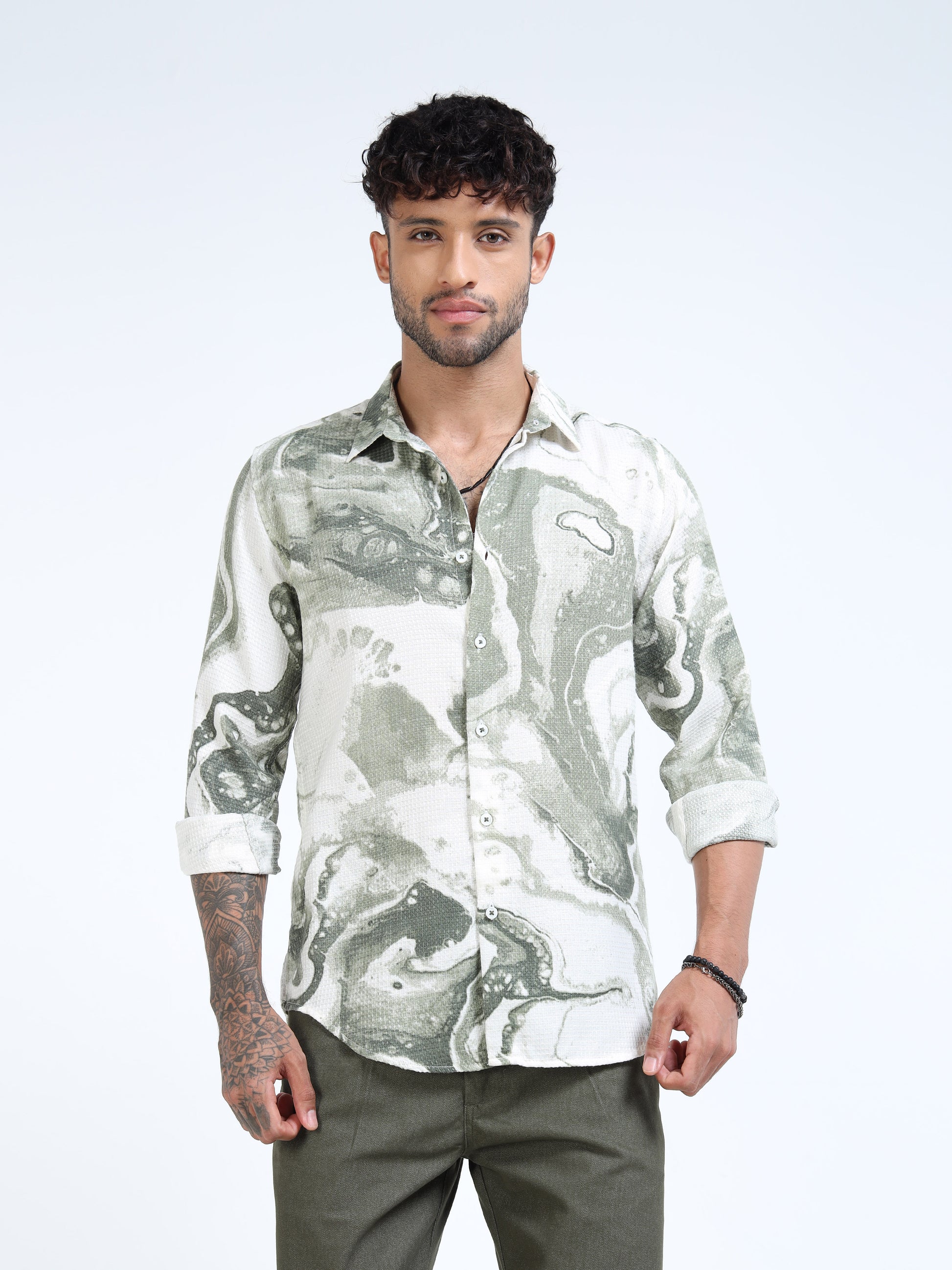 Elevate your style rotation with the Beige & Green Marble Swirl Long-Sleeve Casual Shirt. Featuring a nature-inspired marble swirl print in soft green and beige tones, this shirt blends artistic expression with relaxed modern flair. With full sleeves, a classic collar and a button-down front, it’s crafted to move effortlessly from chilled daytime outings to evening casual plans.