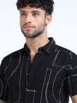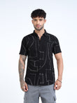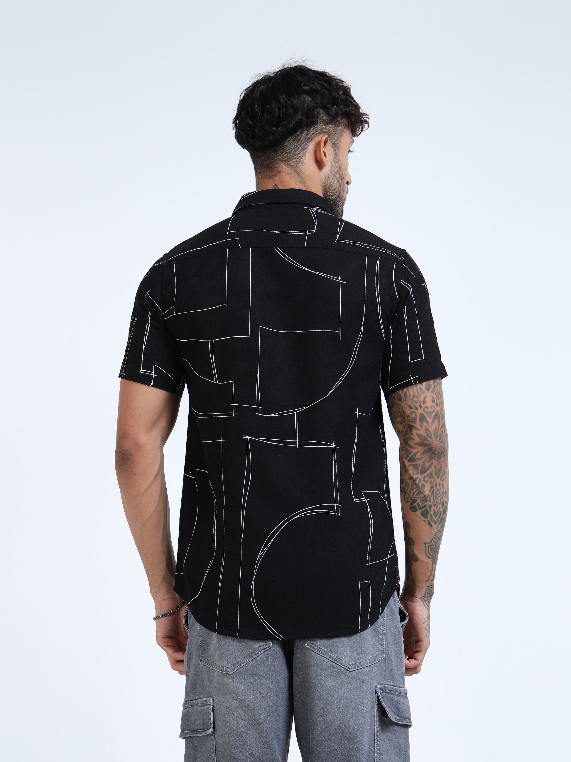 Add the Black Abstract Line Half Sleeve Casual Shirt to your cart now — refresh your casual collection with bold print and versatile style!