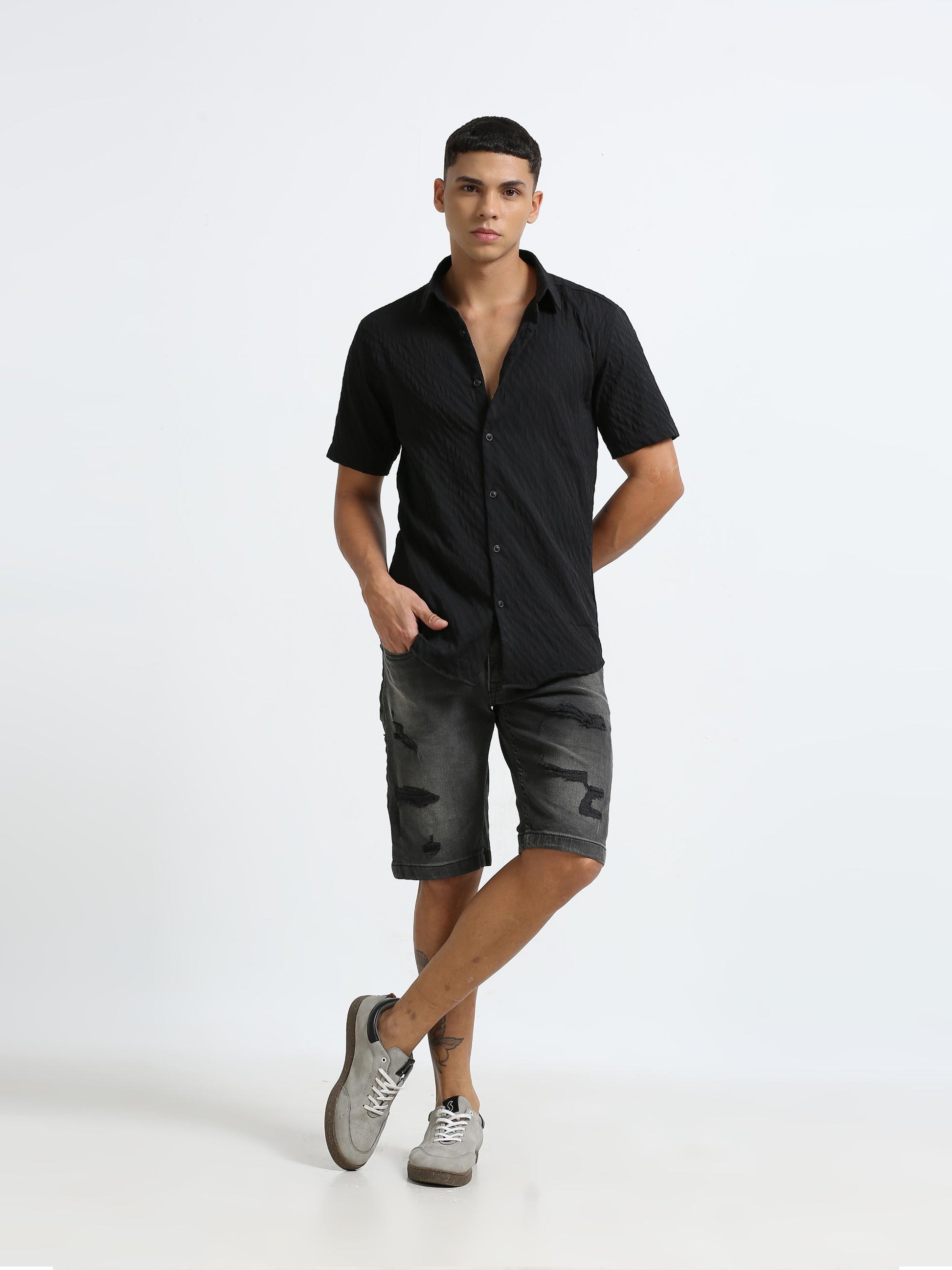 Midnight Black Plain Textured Shirt