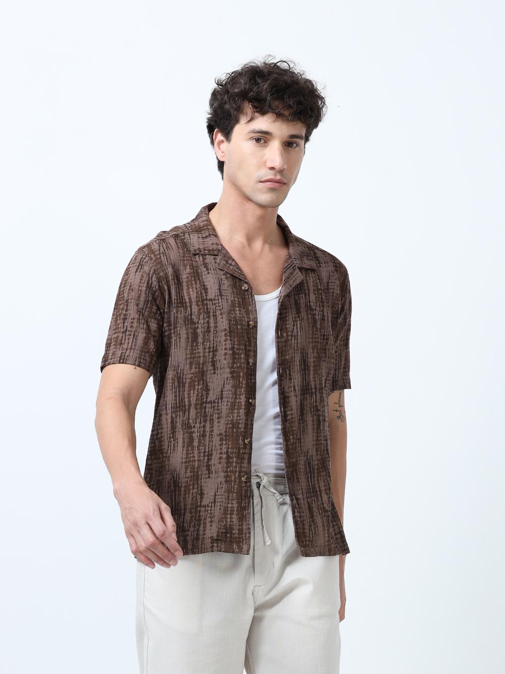 Brown Tie Dye Printed Shirt