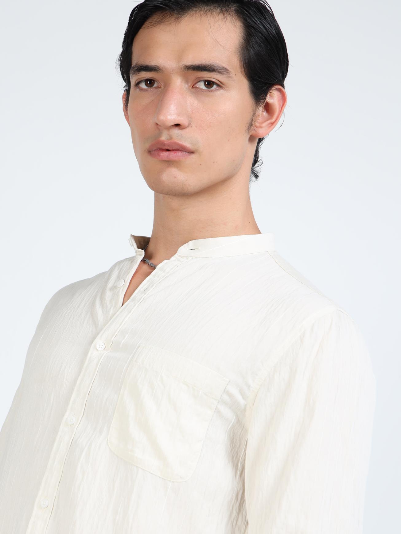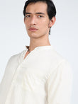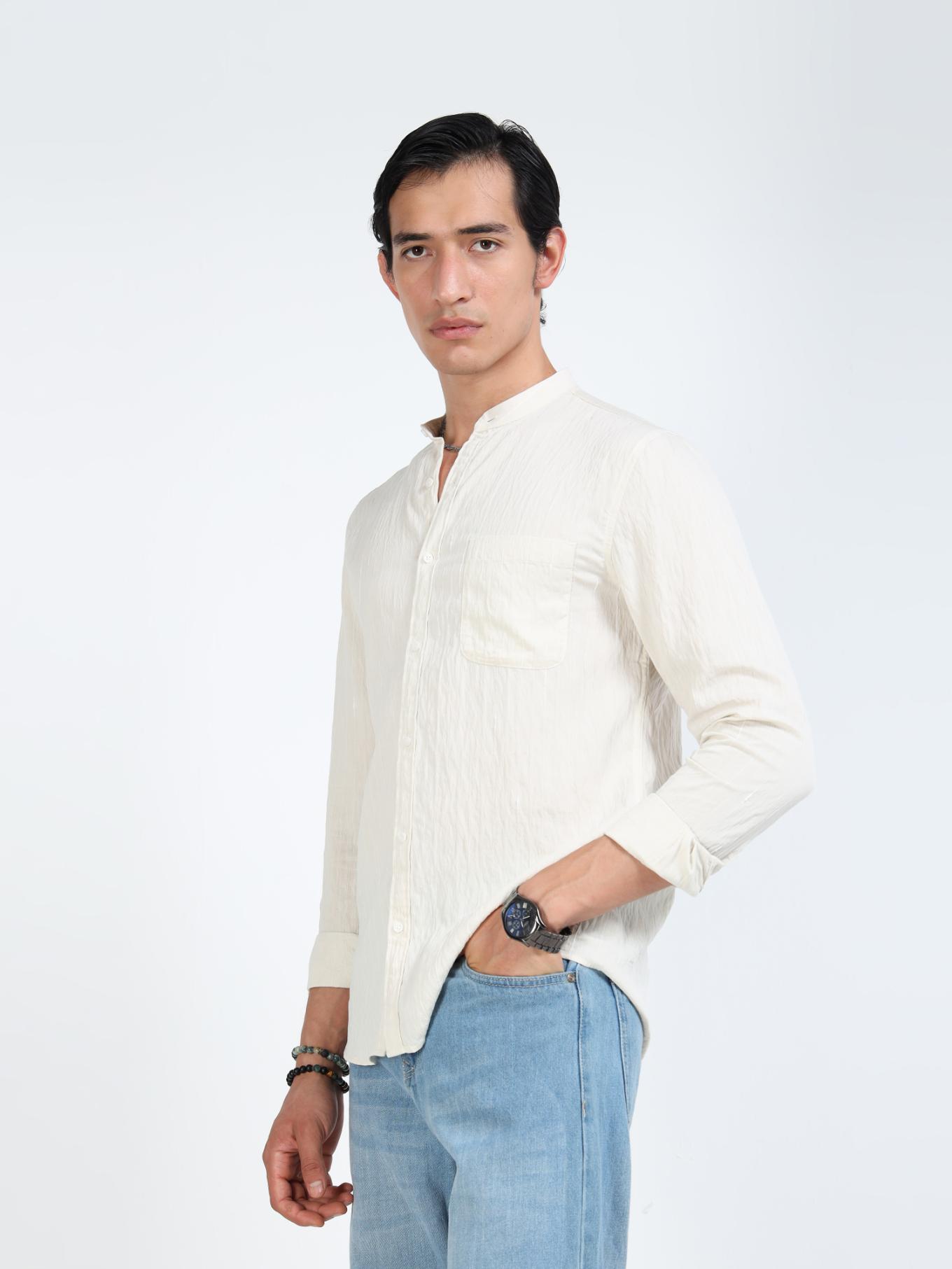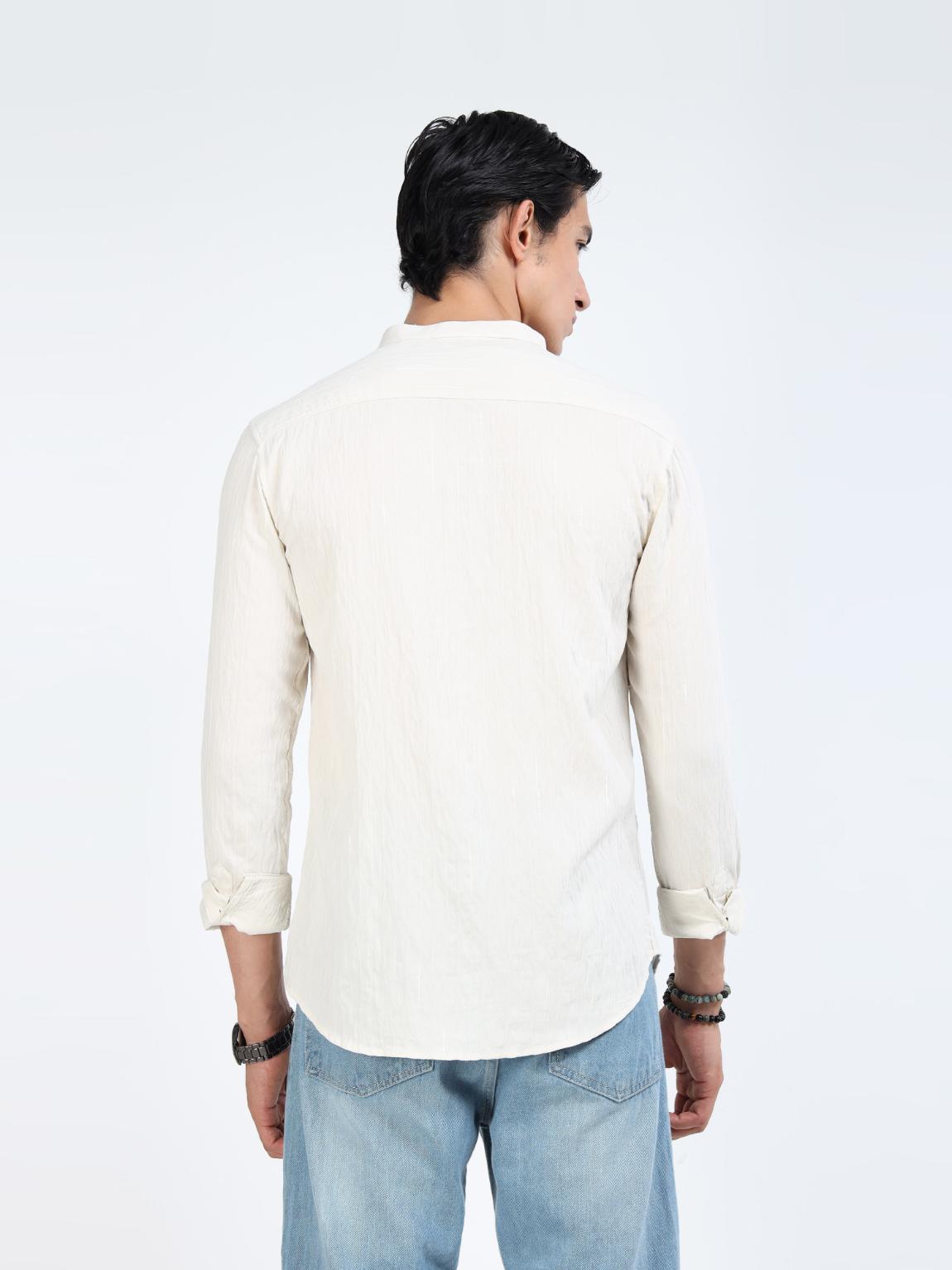 Classic yet contemporary — the Ivory Striped Mandarin Collar Shirt is a study in simplicity, texture, and timeless style.