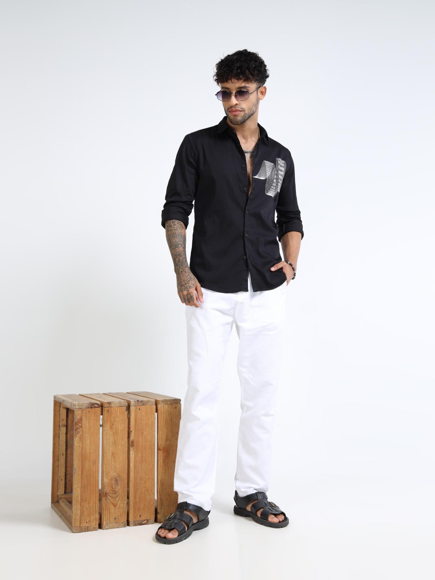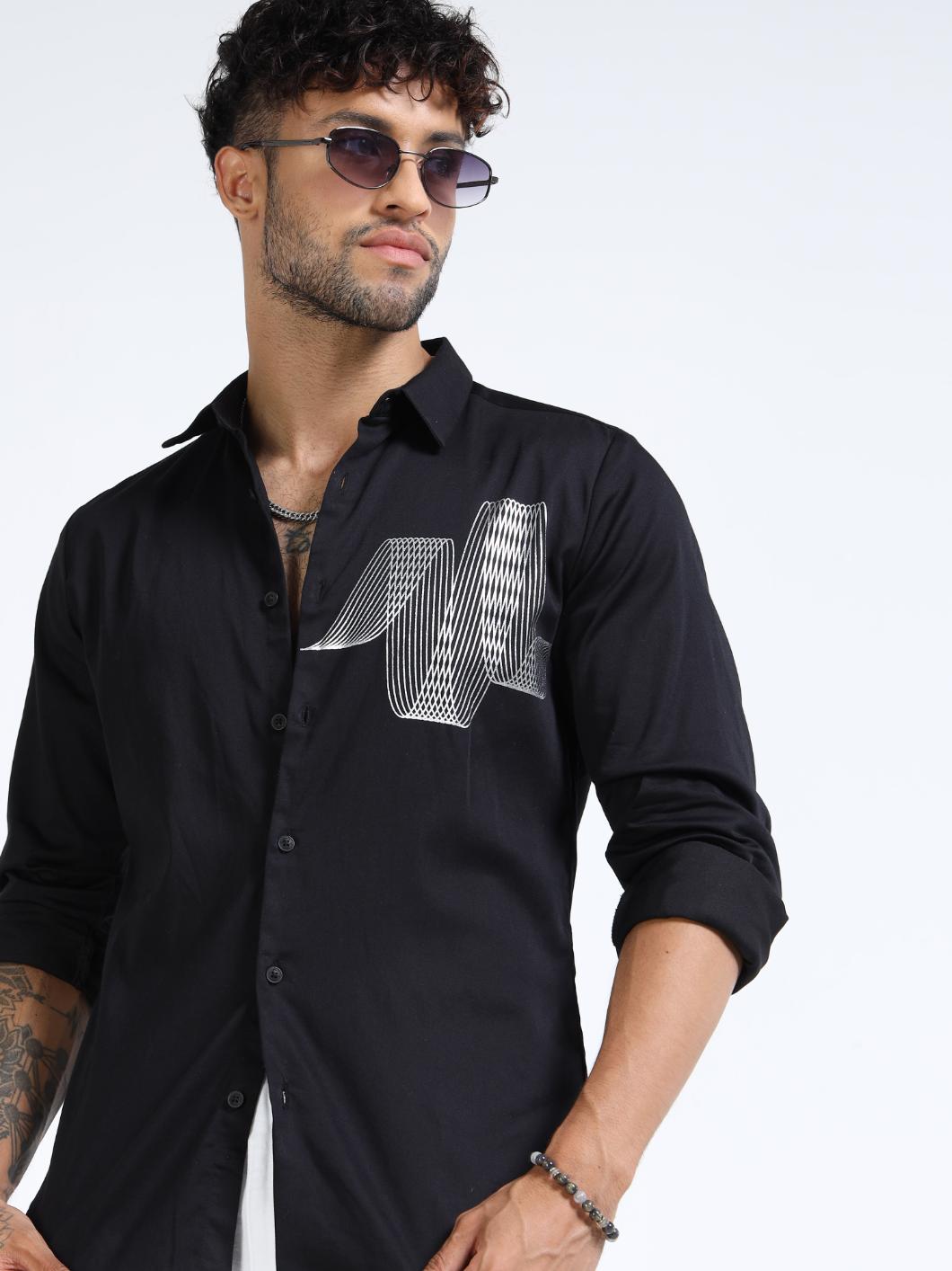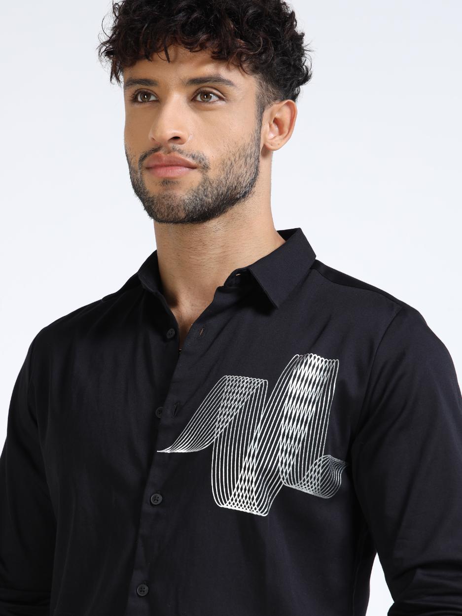 Redefine your black-shirt game with the Black Geometric Line Printed Shirt — a perfect fusion of sleek minimalism and graphic precision. Crafted from premium breathable cotton, this shirt showcases a striking white linear print on the chest that adds depth and edge without overpowering your look.