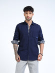 Elevate your everyday wardrobe with the Sphere Navy Textured Full Sleeve Casual Shirt. Crafted from subtly textured fabric in a rich navy tone, this shirt features a classic collar, full button-down front, chest patch pocket, and a modern curved hem — blending relaxed ease with refined detail.