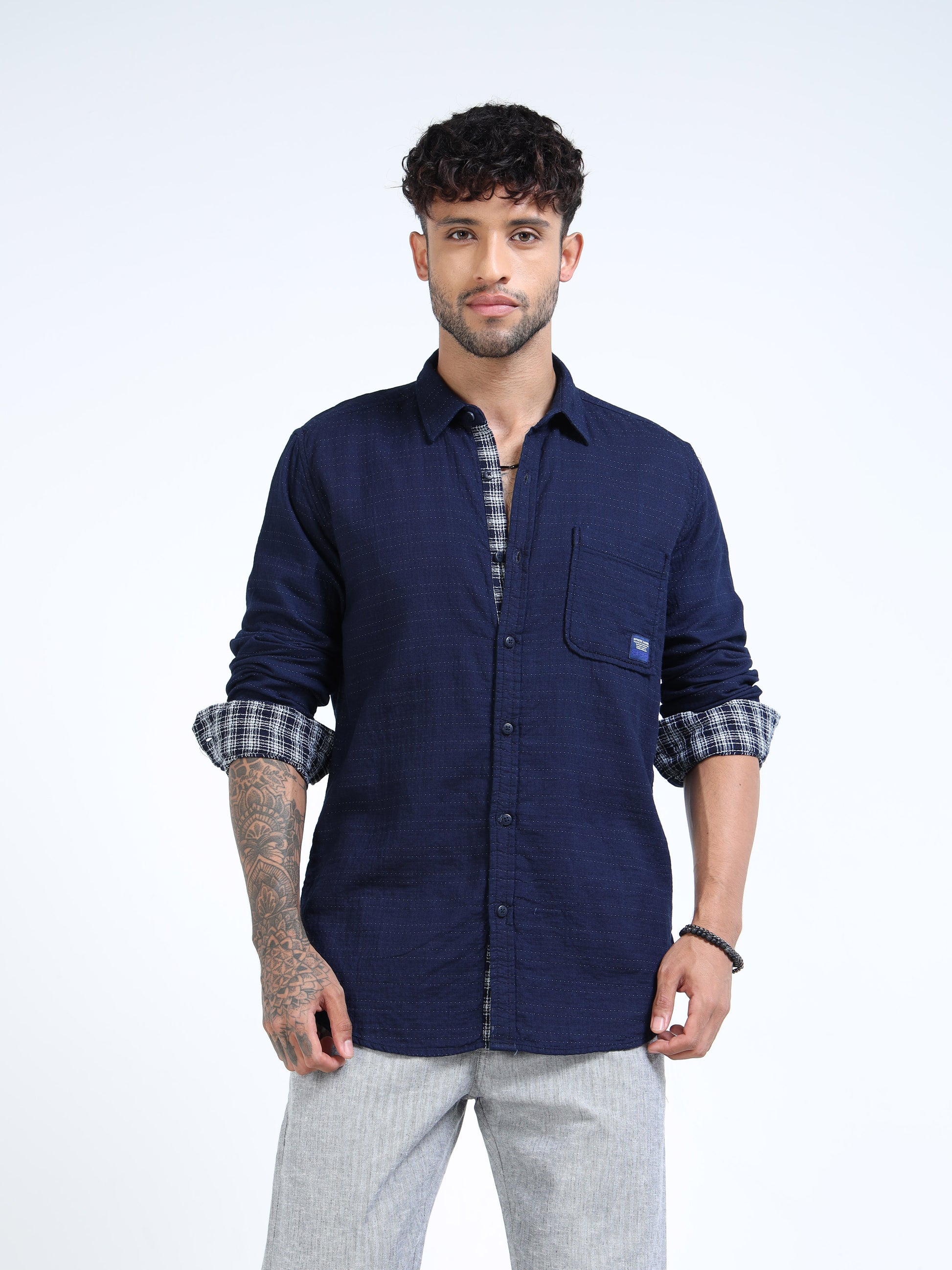 Add the Sphere Navy Textured Full Sleeve Casual Shirt to your cart now — upgrade your smart-casual essentials with a piece that works from day to night!