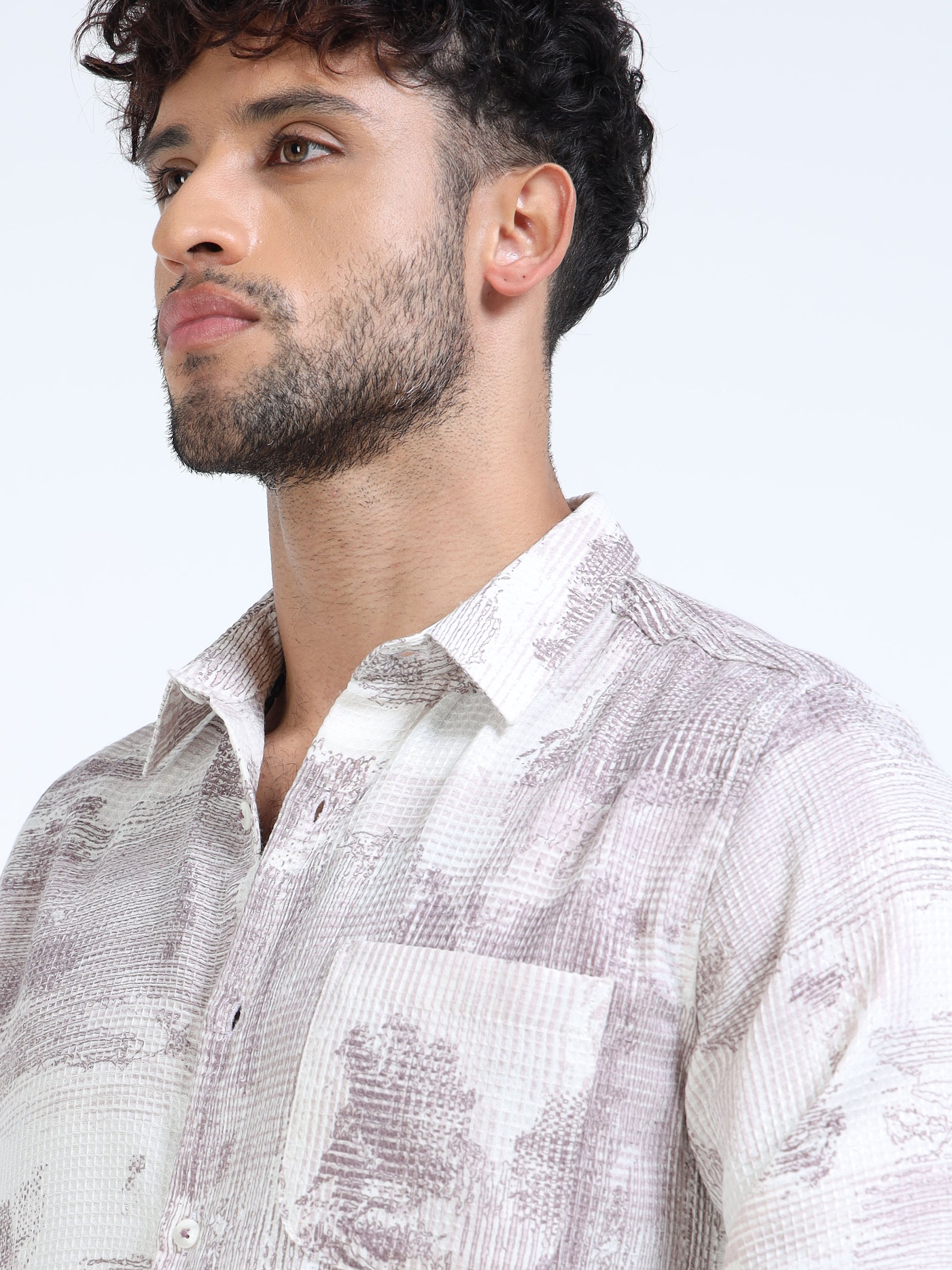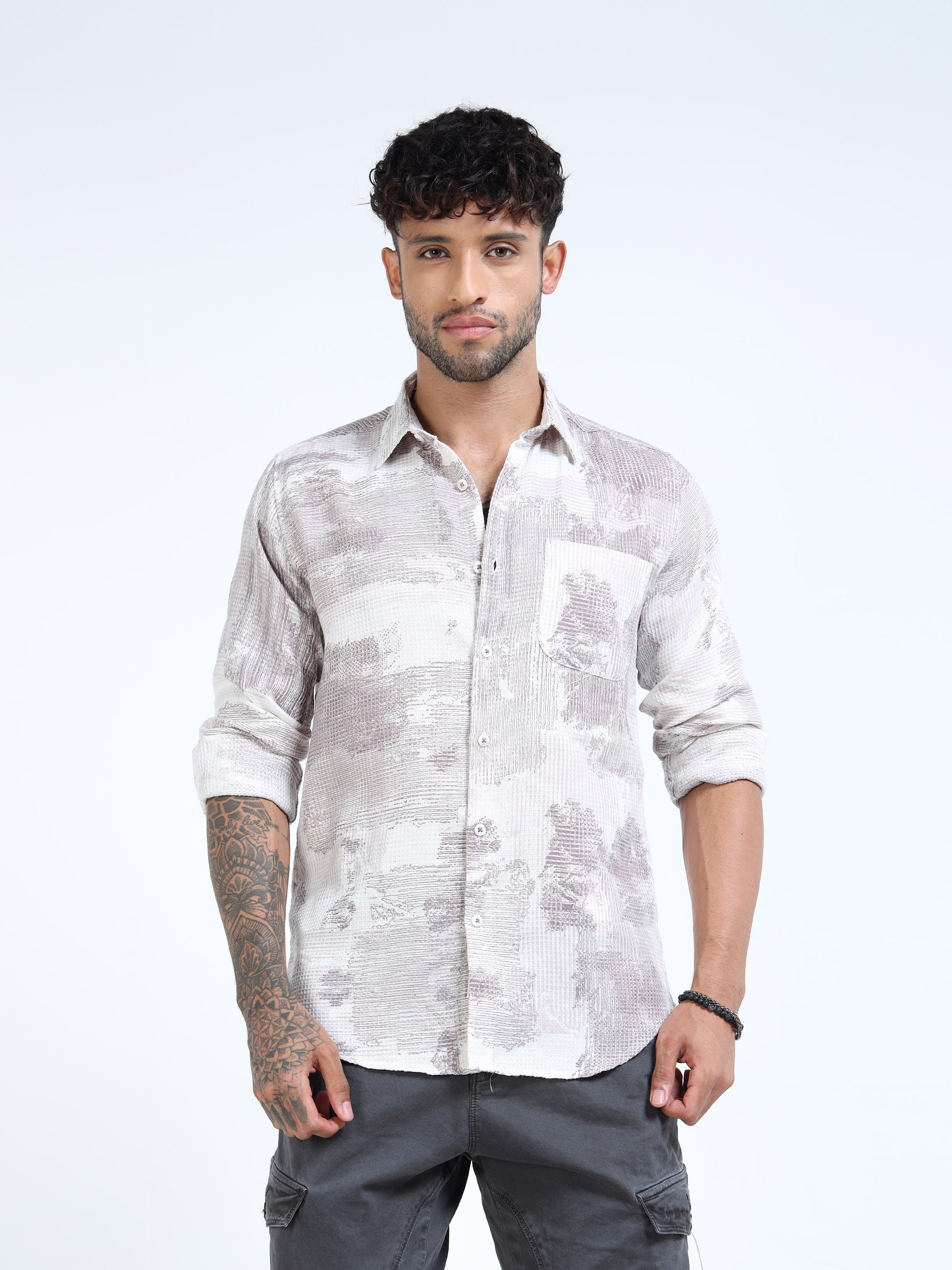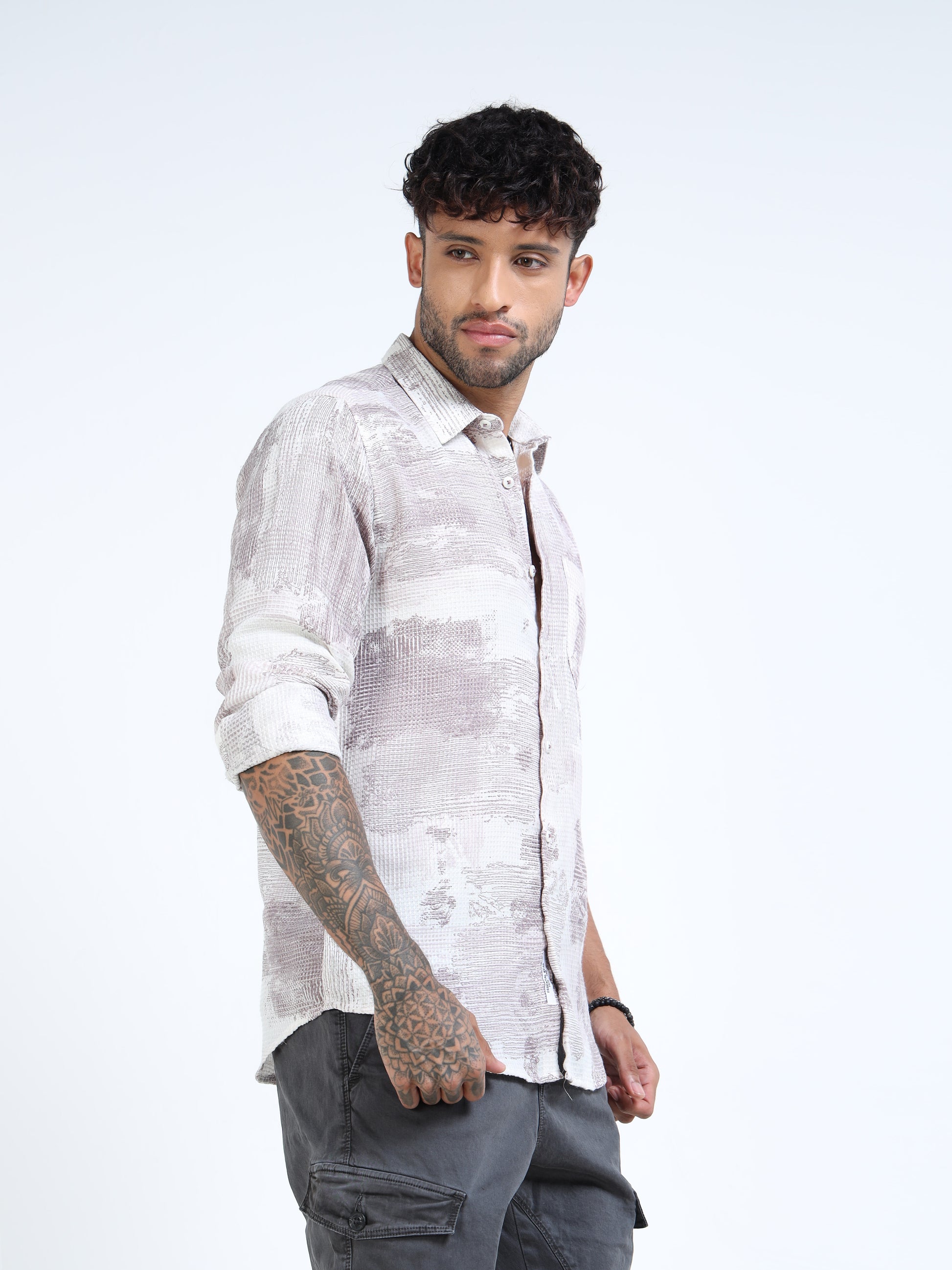 Elevate your casual style with the White & Mauve Brushstroke Textured Long-Sleeve Casual Shirt. Featuring a soft white base layered with artistic mauve brushstroke patterns, this shirt strikes the perfect balance between minimal elegance and creative flair. Designed with full sleeves, a classic collar and button-down front, it’s ideal for relaxed day outings or elevated smart-casual evenings.