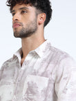 Perfect for coffee runs, dinner meets or weekend outings, this shirt lends a fresh, artistic update to your wardrobe without being overpowering. Its soft mauve tones offer a calm, modern aesthetic that pairs effortlessly with denim, chinos or cargo pants for different moods.